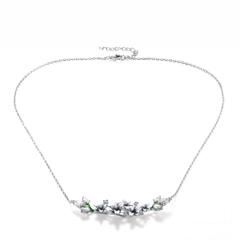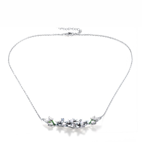 Sterling Silver Necklace Blue Spinel,Enamel,White Cubic Zirconia (N314975ENASL925)