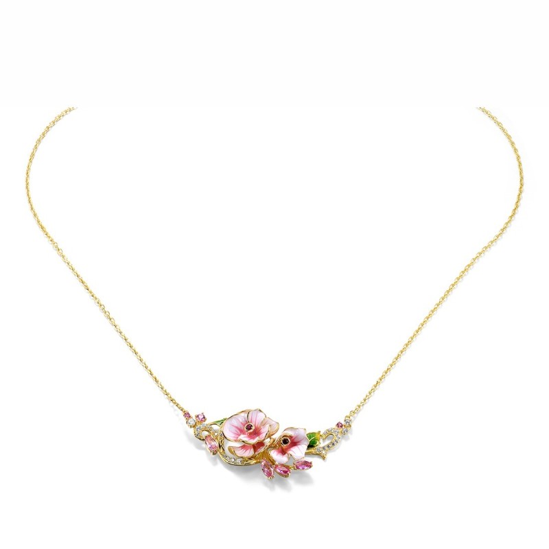Sterling Silver w/ Yellow Plating Necklace Created Pink Sapphire,Created Ruby,Enamel,White Cubic Zirconia (N314966ENASY925)