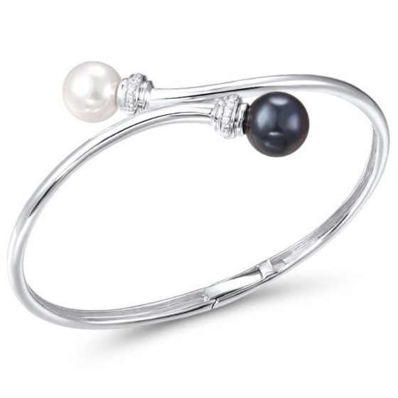 14KW Bangle Black Fresh Water Cultured Pearl,Diamond,Fresh Water White Pearl (G300756BPW14KW)