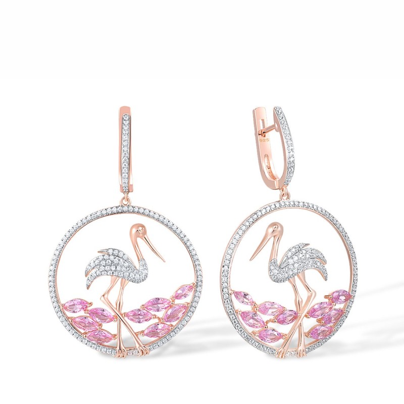 Sterling Silver w/ IONIC ROSE PLATING Earrings Created Pink Sapphire,White Cubic Zirconia (E305197SCPSZSQ925)