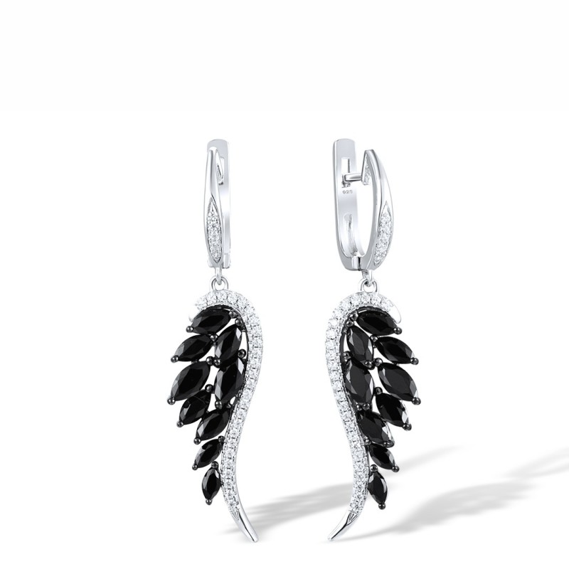 Sterling Silver w/ Black White Plating Earrings Black spinel,White Cubic Zirconia (E313050SBSNZSK925)