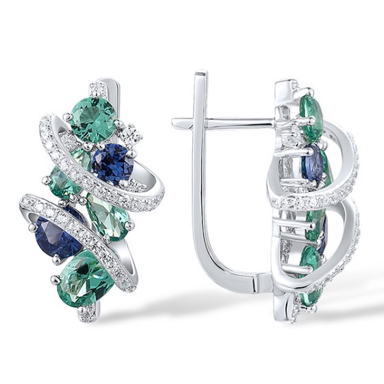 Sterling Silver Earrings Blue Spinel,Green Spinel,White Cubic Zirconia (E317087GSBZSL925)