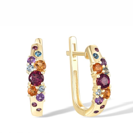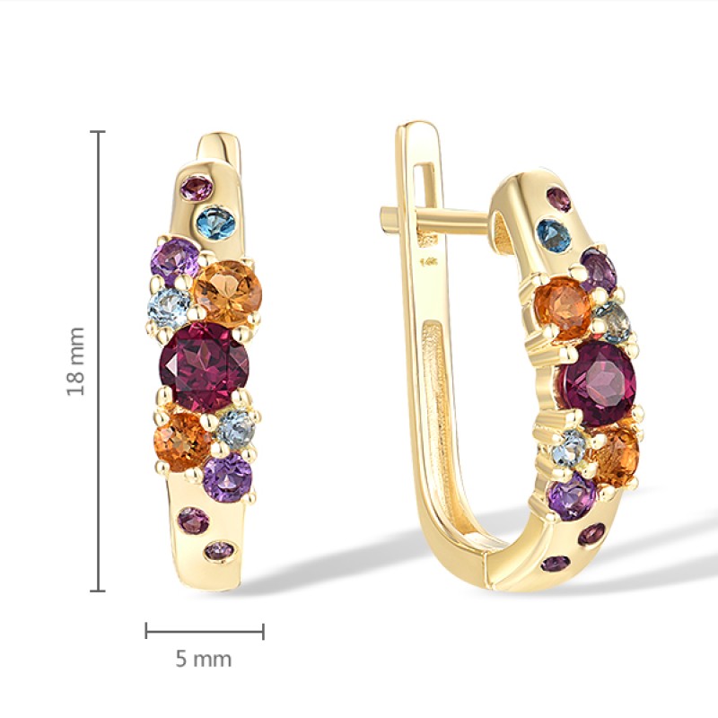 14KY Earrings Amethyst,Blue Topaz (Swiss Blue),Citrine,London Blue Topaz,Rhodolite Garnet (E316545MUL14KY)