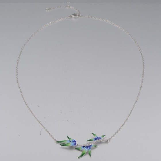 Sterling Silver Necklace Enamel,White Cubic Zirconia (N314304ENASL925)