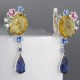 Sterling Silver w/ Black White Plating Earrings Blue Glass,Blue Nano Cubic Zirconia,Enamel,Green Spinel,White Cubic Zirconia,Yellow Glass (E314130ENASK925)