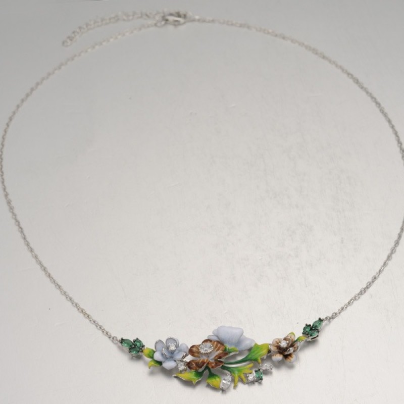 Sterling Silver w/ Black White Plating Necklace Enamel,Green Spinel,White Cubic Zirconia (N314128ENASK925)