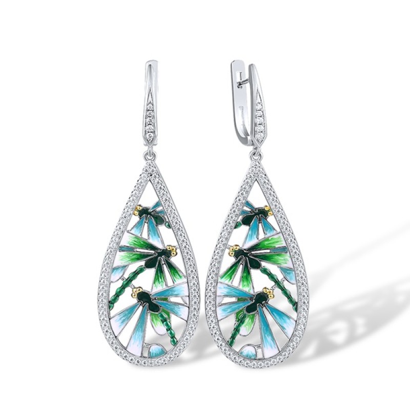 Sterling Silver w/ IONIC YELLOW PLATING Earrings Enamel,White Cubic Zirconia (E314123ENASP925)
