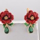 Sterling Silver w/ Yellow Plating Earrings Enamel,Green Glass (E313617AENASY925)