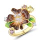 Sterling Silver w/ IONIC YELLOW PLATING Ring Enamel,Green Nano Cubic Zirconia (Per,Rhodolite Garnet Cubic Zirconi,White Cubic Zirconia (R313611ENASP925)