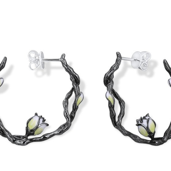 Sterling Silver w/ Black White Plating Earrings Enamel (E313545ENASK925)