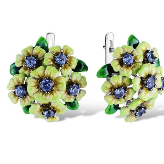 Sterling Silver w/ Black White Plating Earrings Blue Spinel,Enamel (E313420ENASK925)