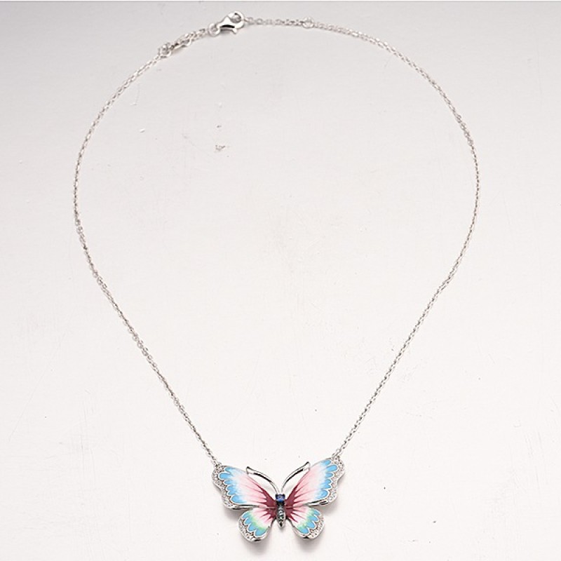 Sterling Silver w/ Black White Plating Necklace Blue Nano Cubic Zirconia,Blue Spinel,Enamel,Green Spinel,White Cubic Zirconia (N313202ENA1SK925)