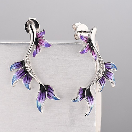 Sterling Silver Earrings Enamel,White Cubic Zirconia (E312187ENA1SL925)