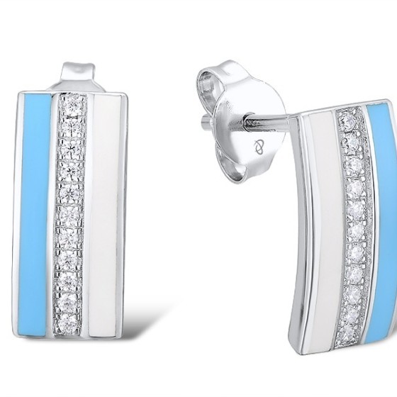 Sterling Silver Earrings Enamel,White Cubic Zirconia (E312147ENA1SL925)