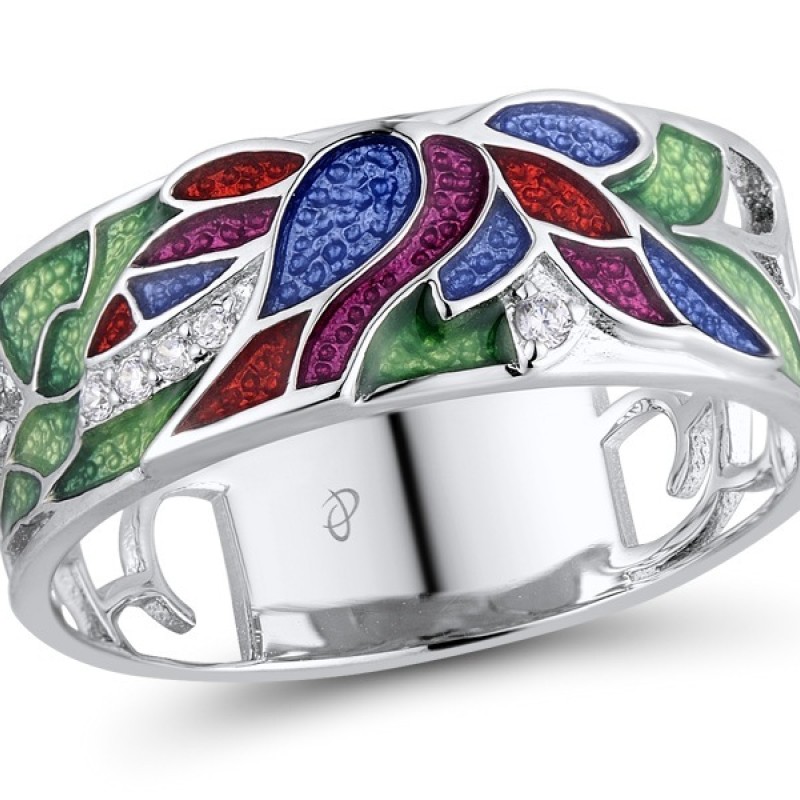Sterling Silver Ring Enamel,White Cubic Zirconia (R311847ENASL925)
