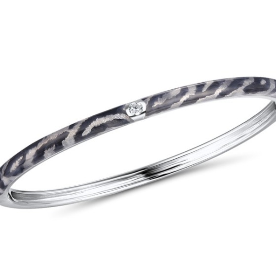 Sterling Silver Bangle Enamel,White Cubic Zirconia (G311272ENA1SL925)