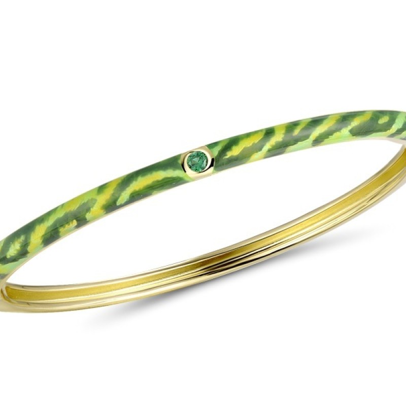 Sterling Silver w/ Yellow Plating Bangle Enamel,Green Spinel (G311272ENASY925)