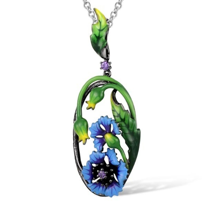 Sterling Silver w/ Black Plating Pendant Amethyst Cubic Zirconia,Enamel (P310787ENASB925)