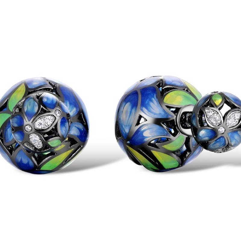 Sterling Silver w/ Black White Plating Earrings Enamel,White Cubic Zirconia (E310737ENASK925)