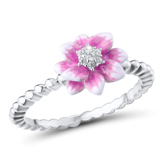 Sterling Silver Ring Enamel,White Cubic Zirconia (R310707ENA1SL925)
