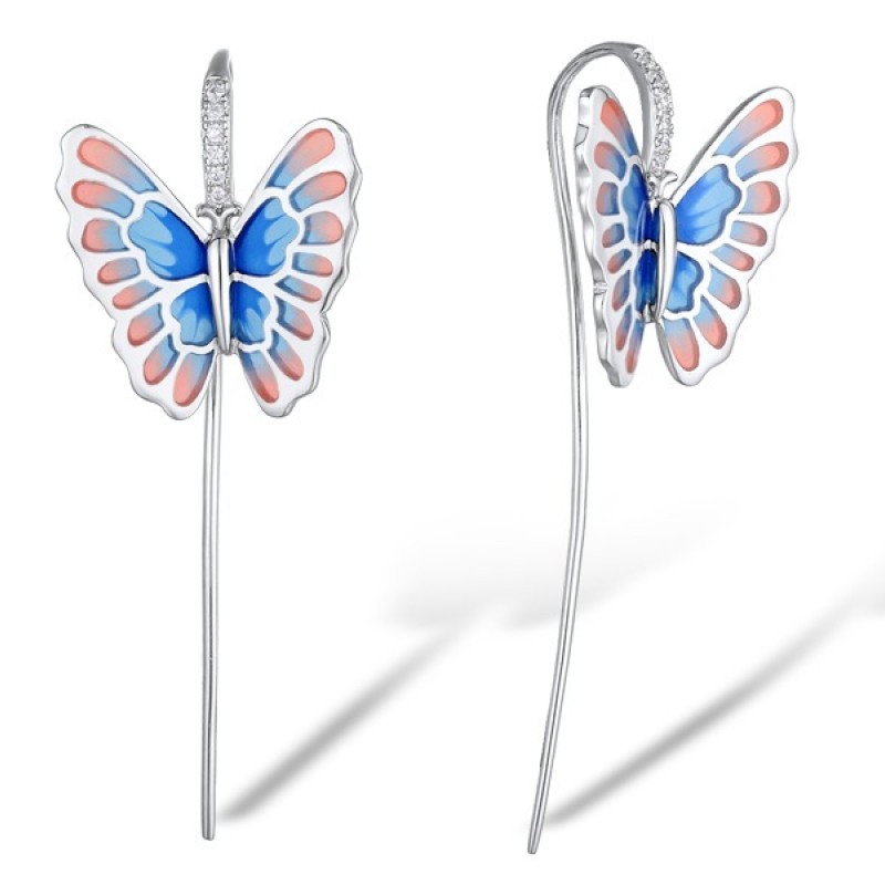Sterling Silver Earrings Enamel,White Cubic Zirconia (E310443ENASL925)