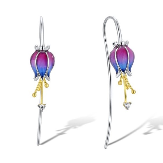 Sterling Silver w/ IONIC YELLOW PLATING Earrings Enamel,White Cubic Zirconia (E310397ENASP925)