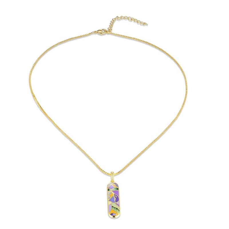 Brass w/ Yellow Gold Plating Necklace Enamel,White Cubic Zirconia (N310245ENA1BRY)