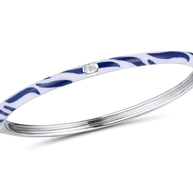 Sterling Silver Bangle Enamel,White Cubic Zirconia (G310111ENA8SL925)
