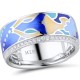 Brass w/ White Gold Plating Ring Enamel,White Cubic Zirconia (R309871ENA2BRW)