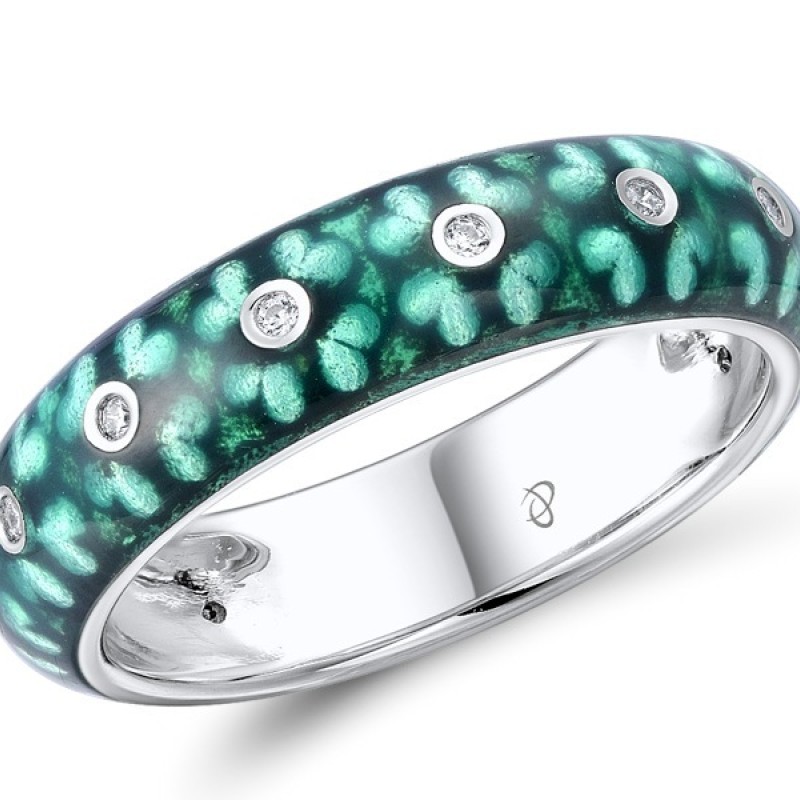 Sterling Silver Ring Enamel,White Cubic Zirconia (R309699ENASL925)