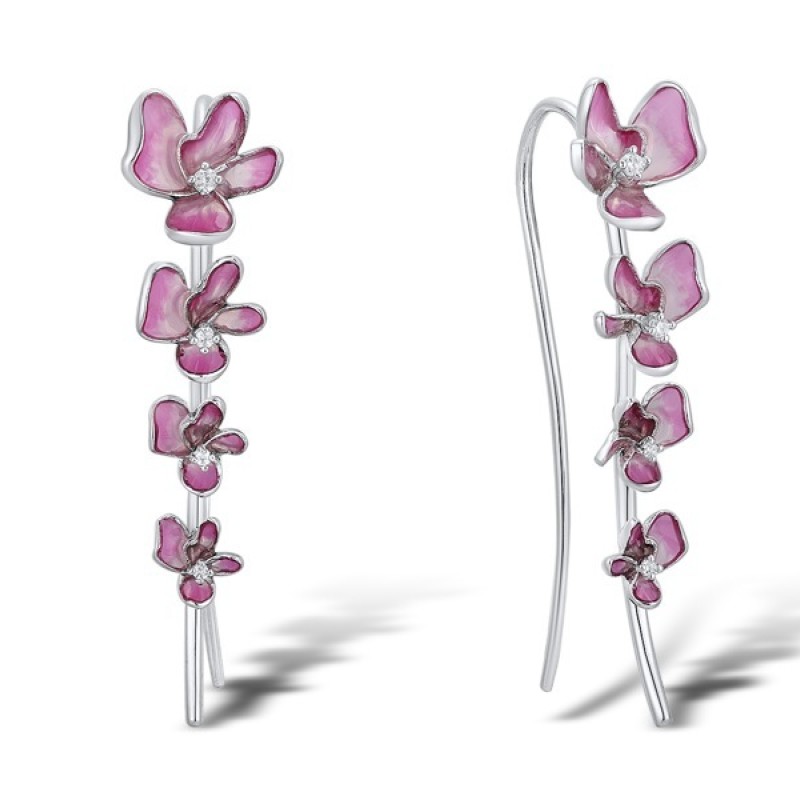 Sterling Silver Earrings Enamel,White Cubic Zirconia (E309682ENASL925)
