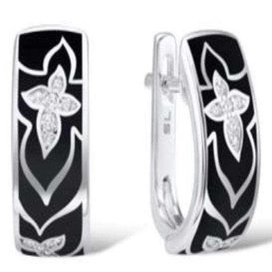 Sterling Silver Earrings Enamel,White Cubic Zirconia (E309191ENA1SL925)