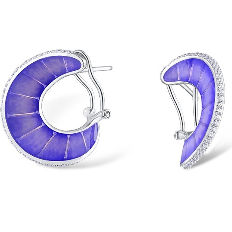 Sterling Silver Earrings Enamel,White Cubic Zirconia (E309138ENA1SL925)