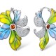 Sterling Silver Earrings Enamel,White Cubic Zirconia,Yellow Nano Cubic Zirconia (Ci (E309057ENASL925)