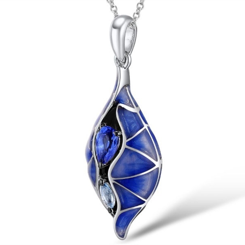 Sterling Silver Pendant Blue Glass,Enamel (P308990ENASL925)