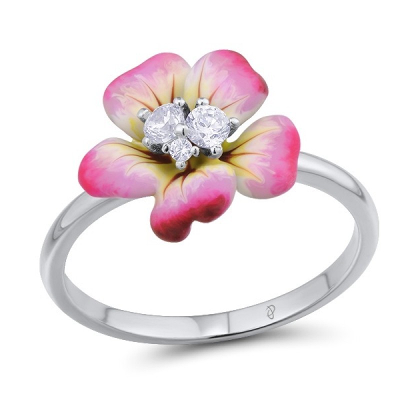 Sterling Silver Ring Enamel,White Cubic Zirconia (R308713ENS3SL925)