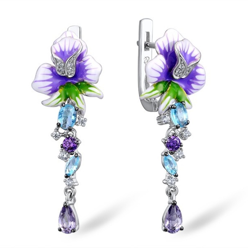 Sterling Silver Earrings Amethyst Cubic Zirconia,Blue Glass,Enamel,Purple Glass,White Cubic Zirconia (E308134ENASL925)
