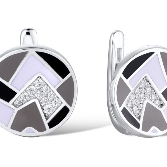 Brass w/ White Gold Plating Earrings Enamel,White Cubic Zirconia (E308113ENA1BRW)