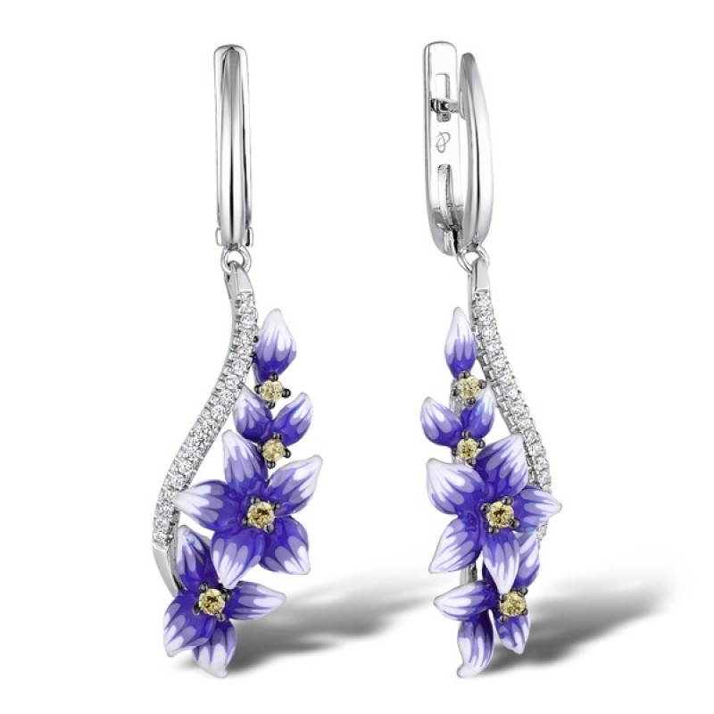 Sterling Silver w/ Black White Plating Earrings Enamel,White Cubic Zirconia,Yellow Cubic Zirconia (E308017ENA1SK925)