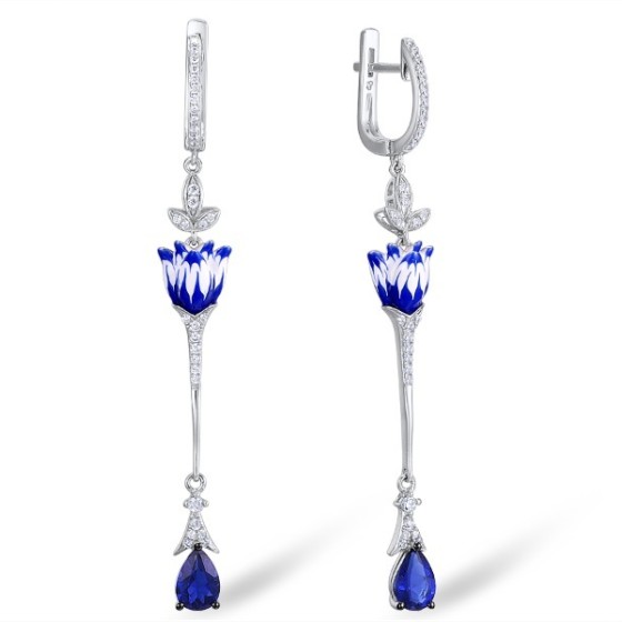 - Blue Glass 2pc 1.230ct ,Enamel,White Cubic Zirconia 64pc 0.740ct