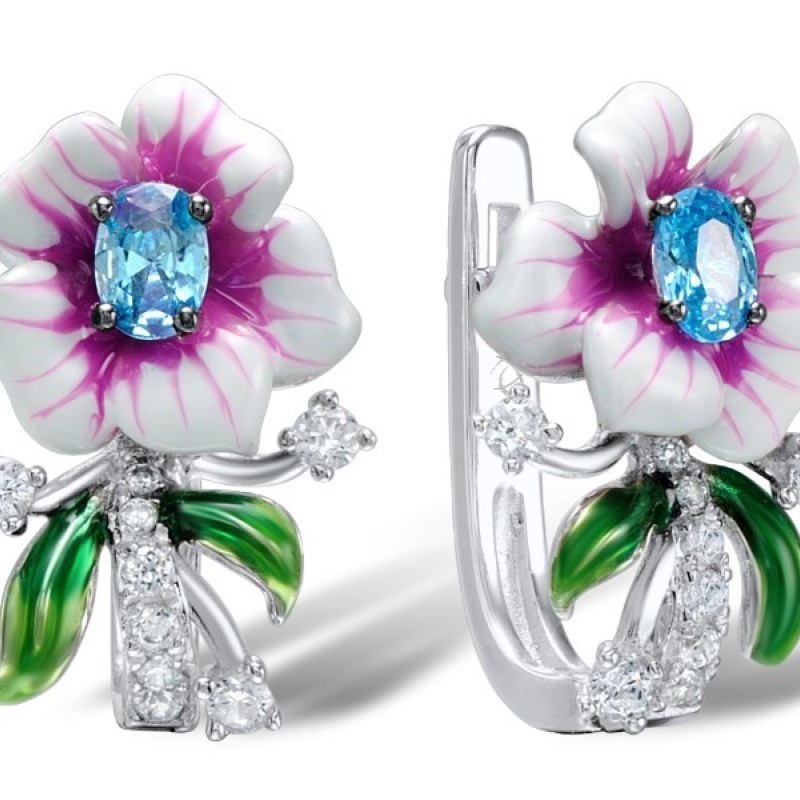 Sterling Silver Earrings Blue Cubic Zirconia,White Cubic Zirconia (E306964ENASL925)