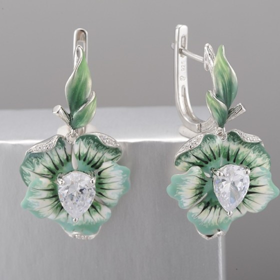 Sterling Silver Earrings Enamel,White Cubic Zirconia (E306768ENS3SL925)