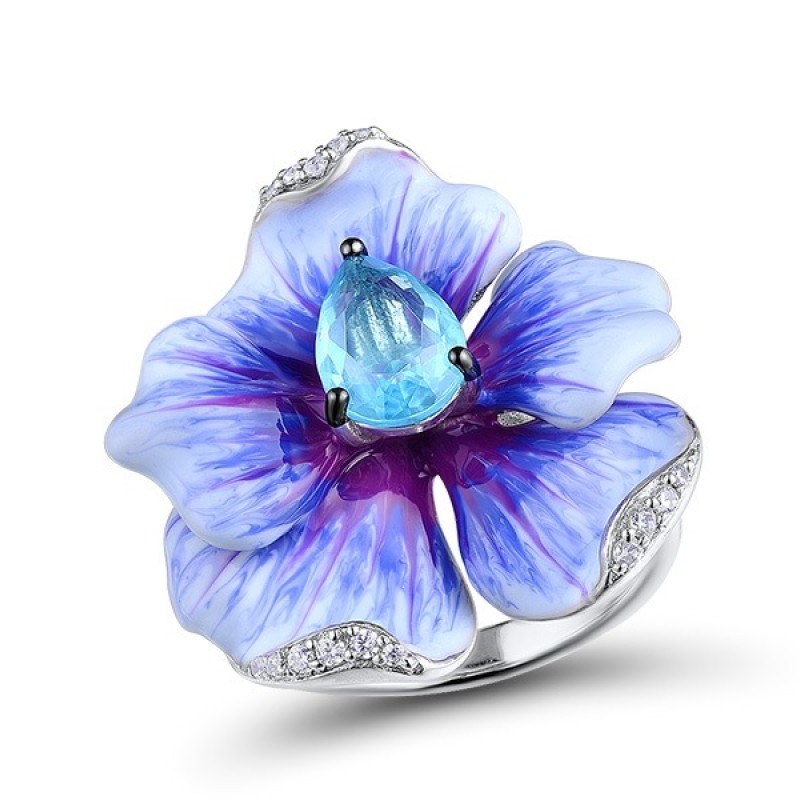 Sterling Silver w/ Black White Plating Ring Blue Glass,Enamel,White Cubic Zirconia (R306768ENA4SK925)