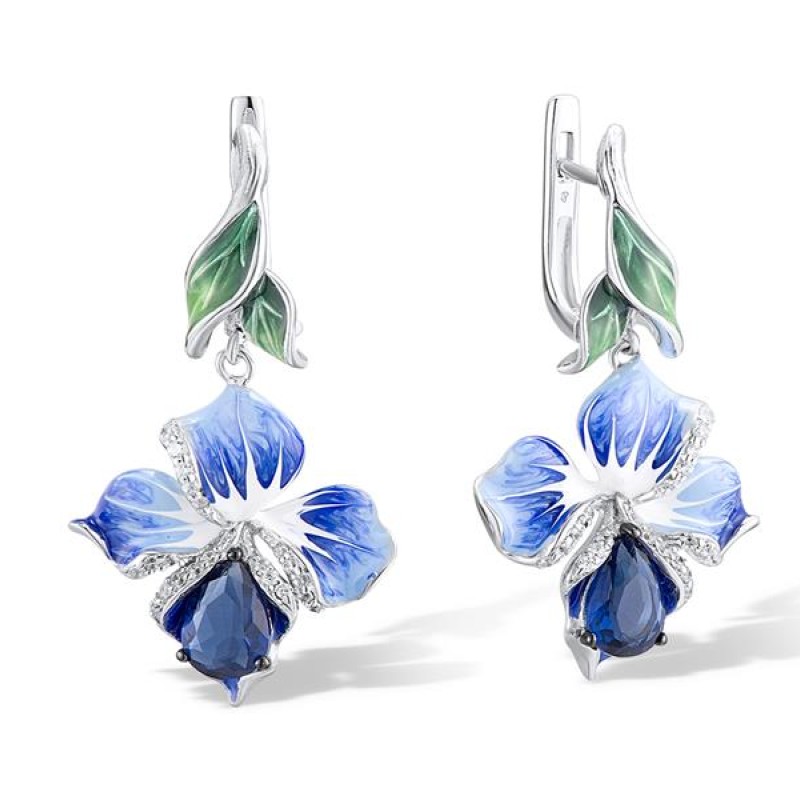 Sterling Silver w/ Black White Plating Earrings Blue Glass,Enamel,White Cubic Zirconia (E306767ENA2SK925)