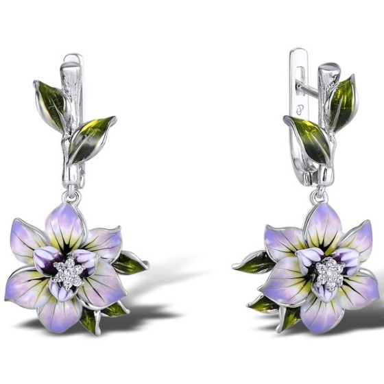 Sterling Silver Earrings Enamel,White Cubic Zirconia (E306759ENA1SL925)