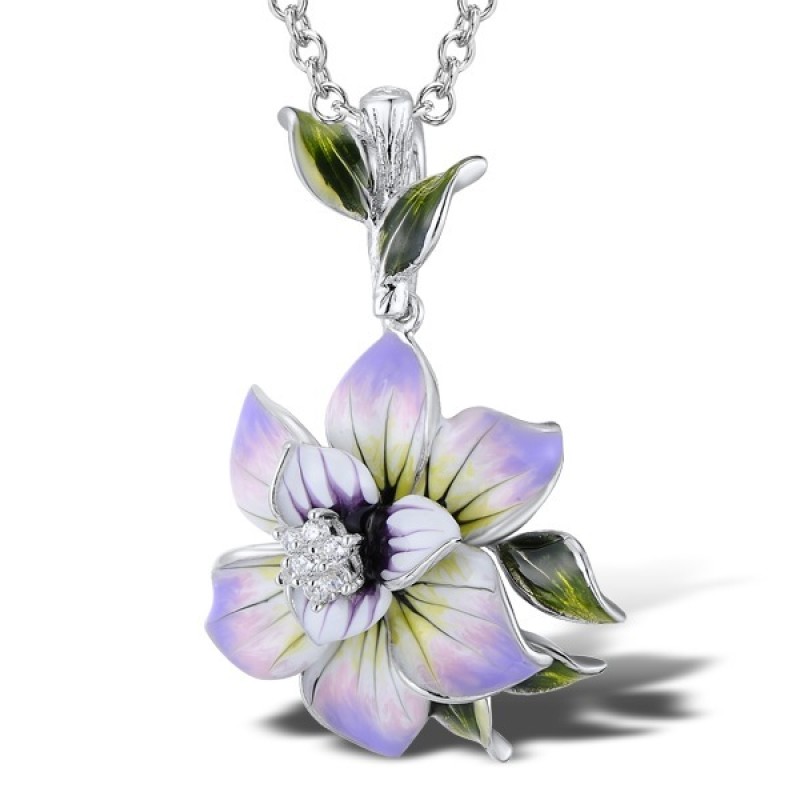 Sterling Silver Pendant Enamel,White Cubic Zirconia (P306759ENA1SL925)