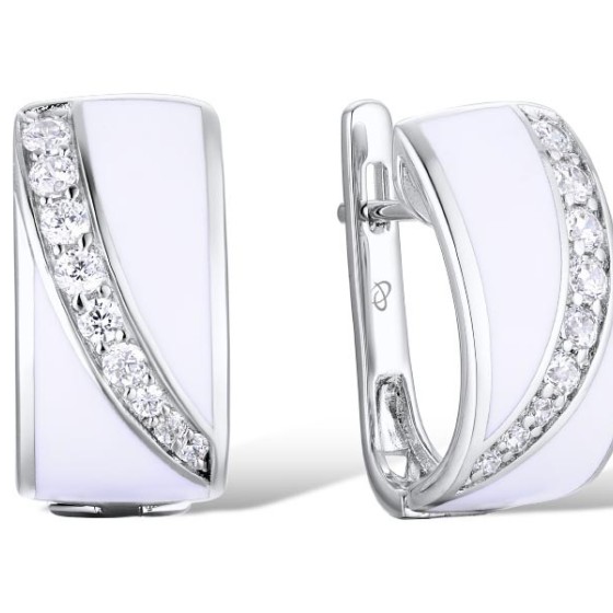 Brass w/ White Gold Plating Earrings Enamel,White Cubic Zirconia (E306660ENA1BRW)