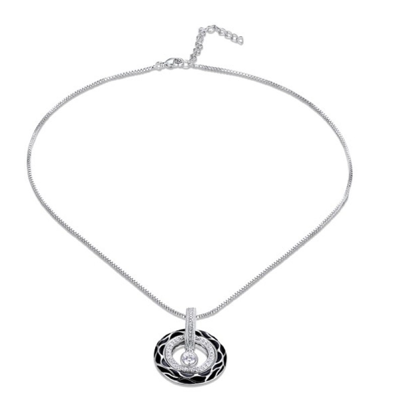 Brass w/ White Gold Plating Necklace Enamel,White Cubic Zirconia (N305191ENA2BRW)