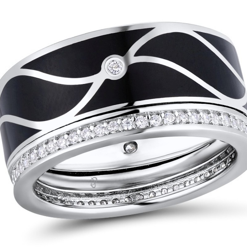Sterling Silver Ring Enamel,White Cubic Zirconia (R304527ENA3SL925)