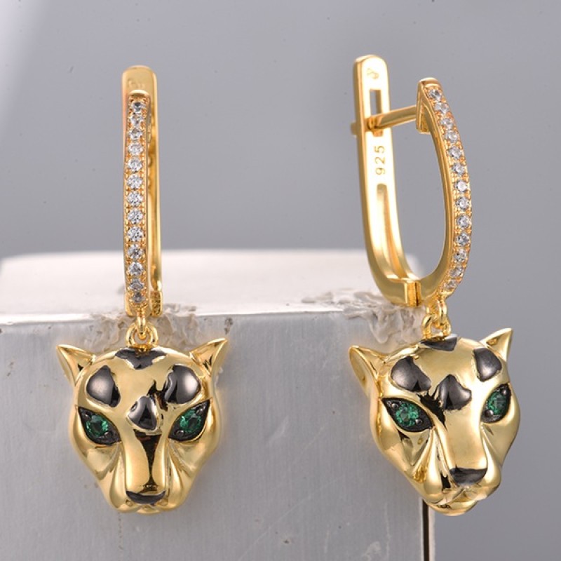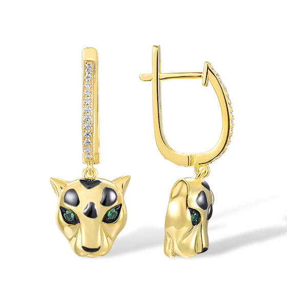 Sterling Silver w/ Yellow Black Plating Earrings Green Spinel,White Cubic Zirconia (E317649GSZSC925)